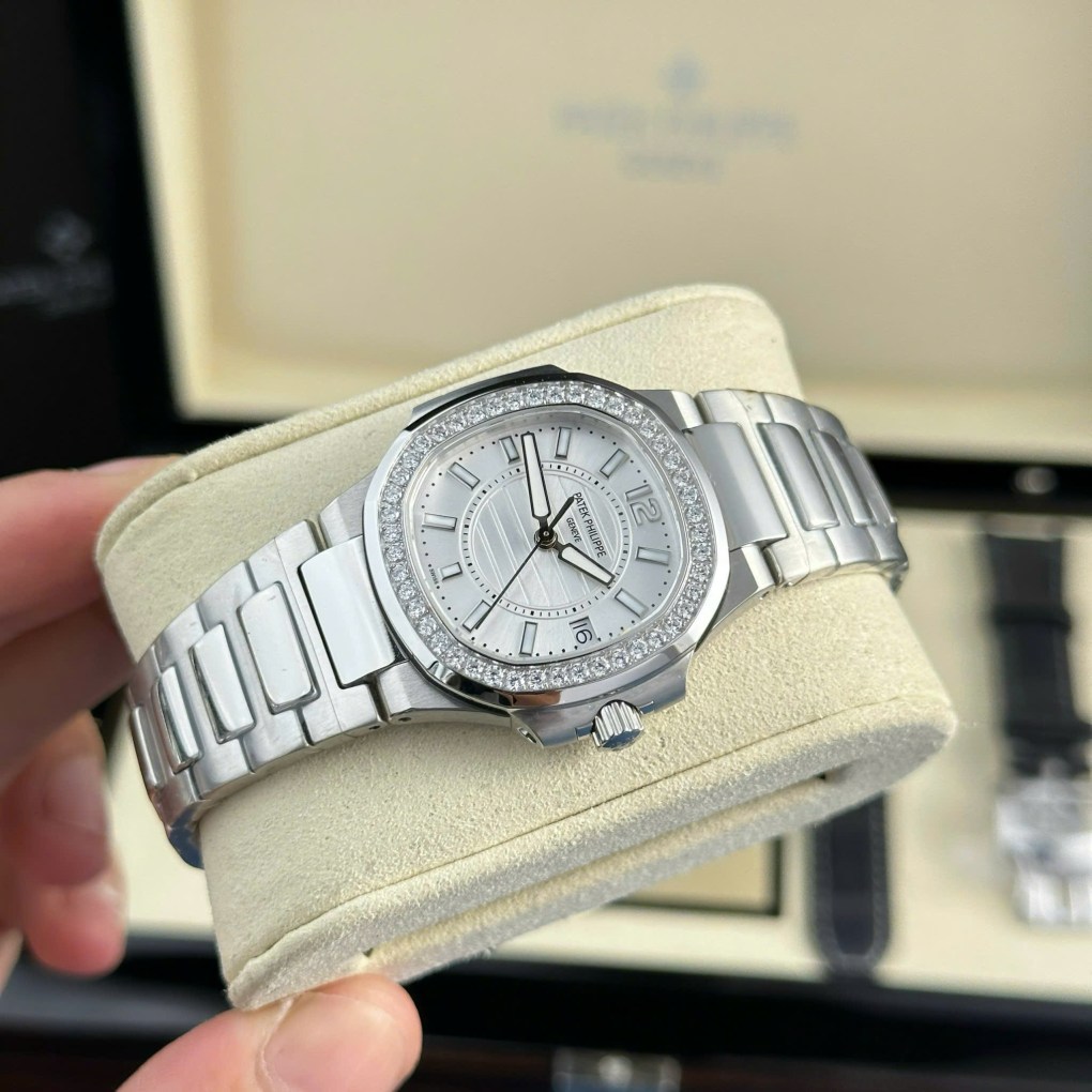 Đồng hồ Patek Philippe Nautilus 7010 Replica 11 mặt xám viền đính đá GRF 32mm