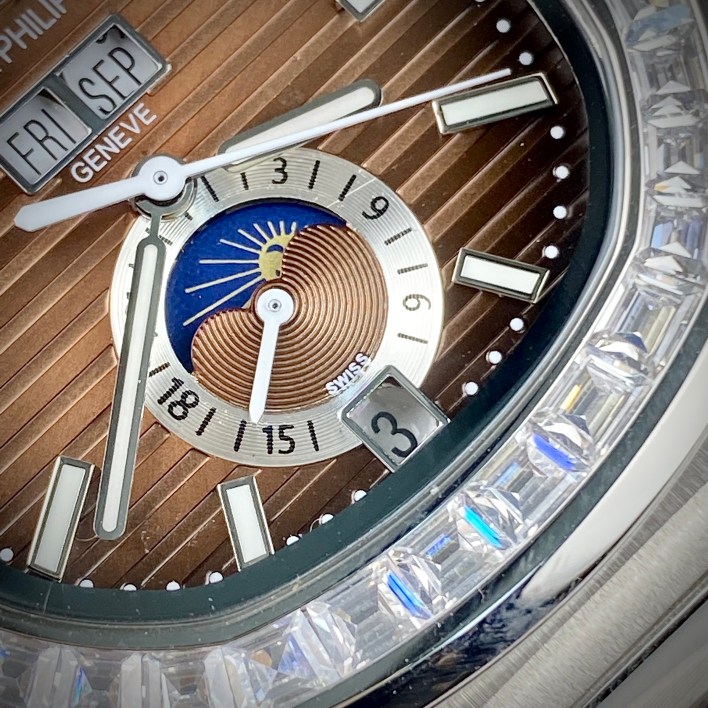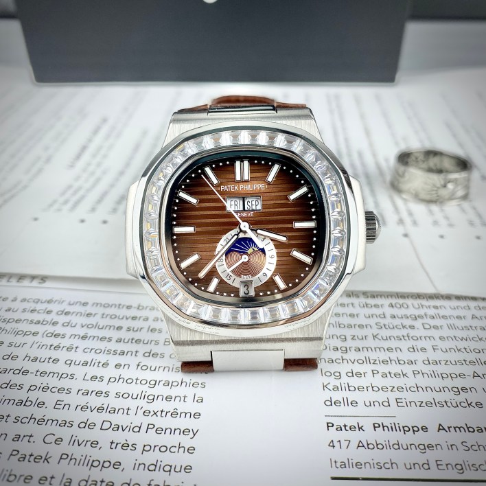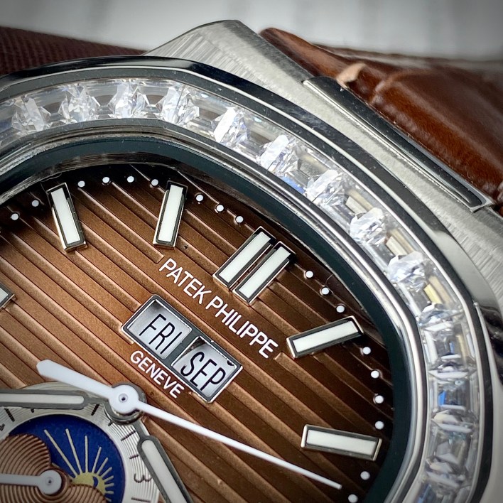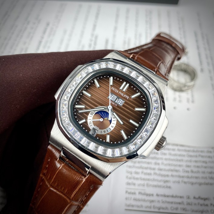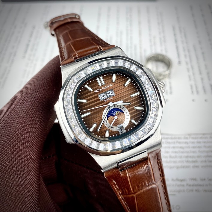 Đồng hồ Patek Philippe 5205R Fake 11 máy Nhật đính đá màu nâu 40mm