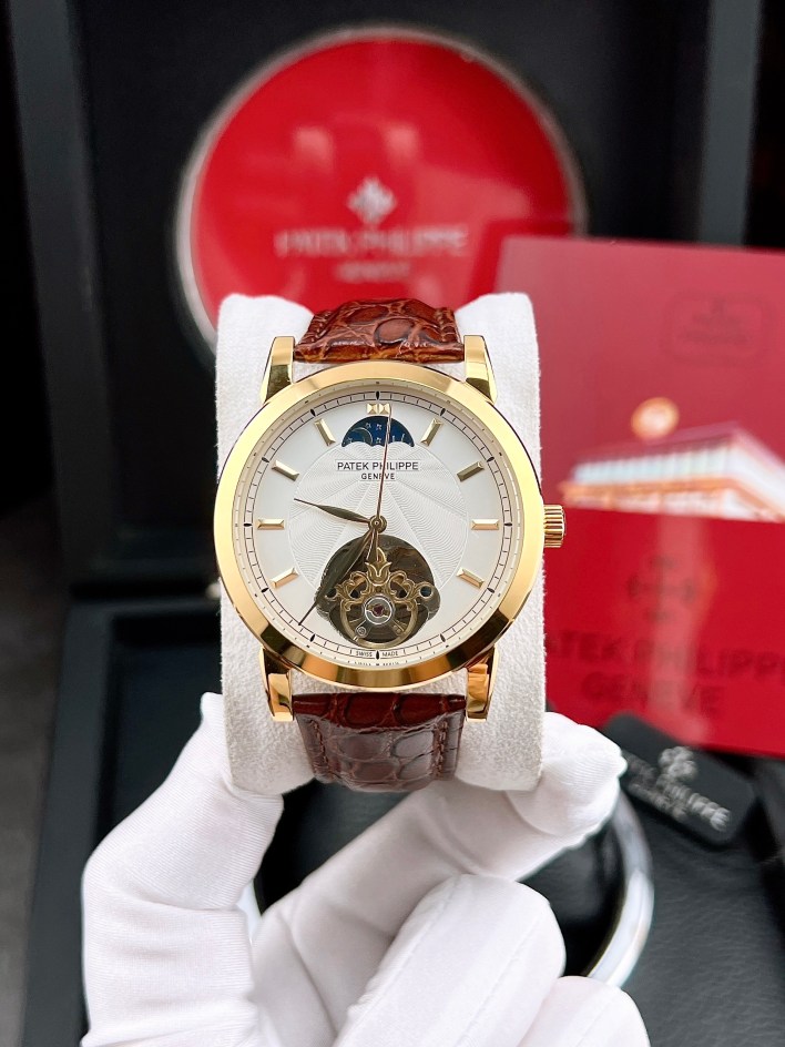 Đồng hồ Patek Philippe cơ lộ máy nam dây da màu đen 2 màu 42mm