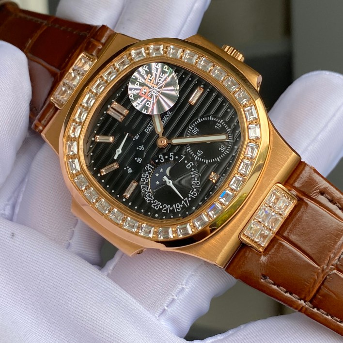 Đồng hồ Patek Philippe 5205R Fake 11 máy Nhật đính đá màu nâu 40mm