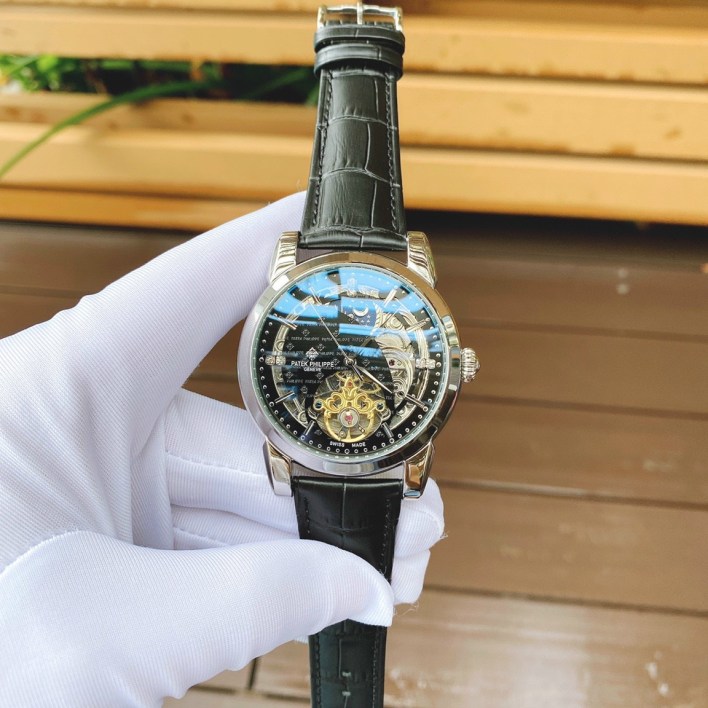 Nhắc đến đồng hồ, chúng ta thường nghĩ ngay đến thời gian cũng như hàm chứa nhiều điều xảy ra trong cuộc đời mỗi người. Đồng hồ đeo tay đang dần trở thành một món phụ kiện thời trang không thể thiếu trong tủ đồ của mỗi người! Nếu bạn đang băn khoăn và muốn tìm mua một mẫu đồng hồ nam đẹp với chất lượng tốt, giá cả hợp lý cùng chính sách bảo hành dài và uy tín thì hãy cùng tham khảo Đồng hồ Patek Philippe cơ lộ máy dây da màu đen Super Fake tại Thế Giới Đồng Hồ Đẹp nhé !